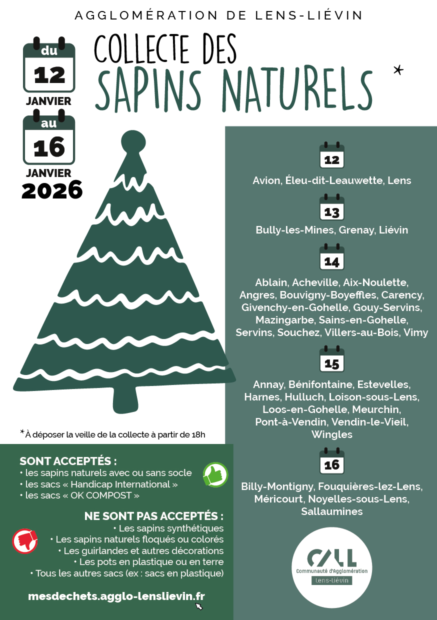 Du 12 au 16 janvier 2026, les services de la CALL organisent une opération de collecte de sapins de Noël naturels.