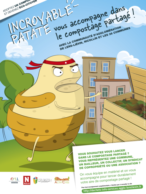 L’agglo de Lens-Liévin vous conseille sur l’emplacement du composteur, vous fournit le matériel nécessaire (composteur partagé, bio-seaux, communication), forme 2 référents-composteur qui seront les garants du bon suivi du site de compostage.